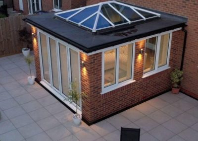 It gives a more permanent feel than a conservatory with floor-to-ceiling windows and a lantern style roof. The thick brick foundations are an excellent feature which can improve the thermal efficiency of your Derbyshire home.
